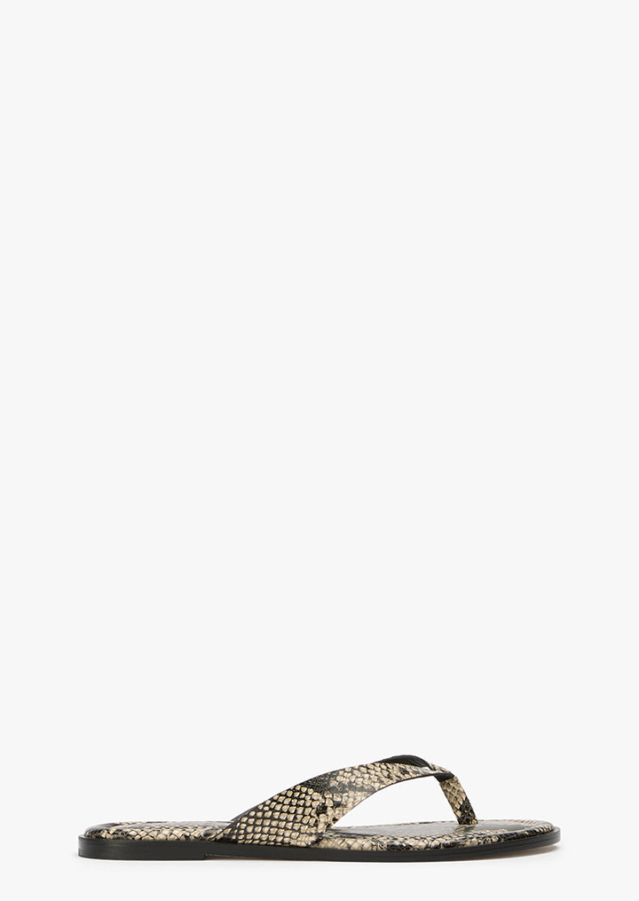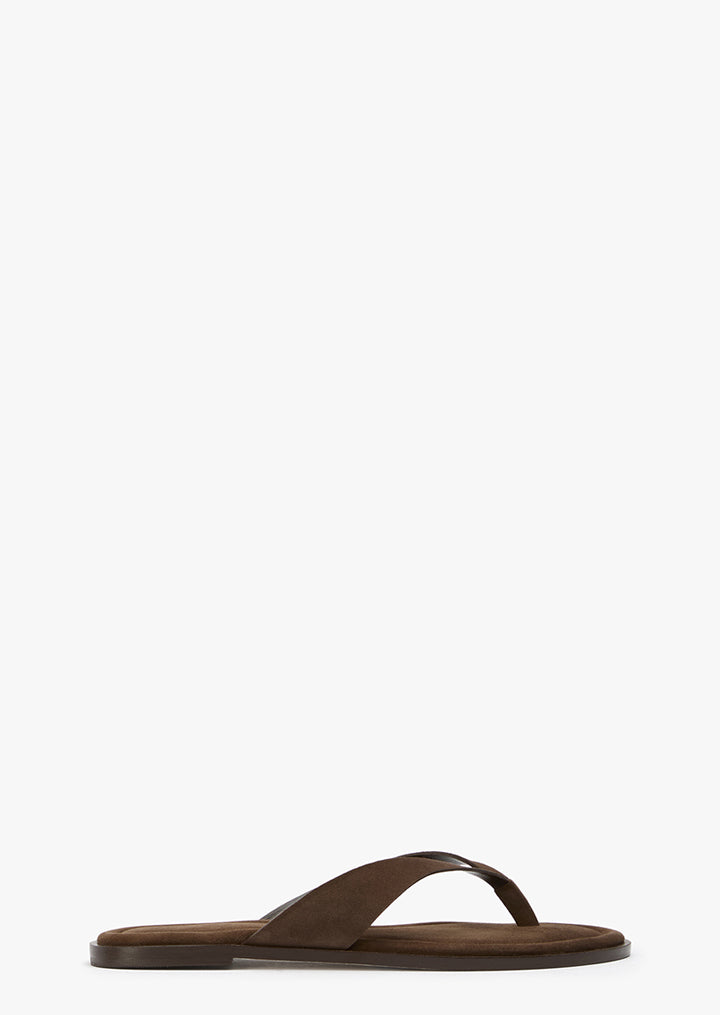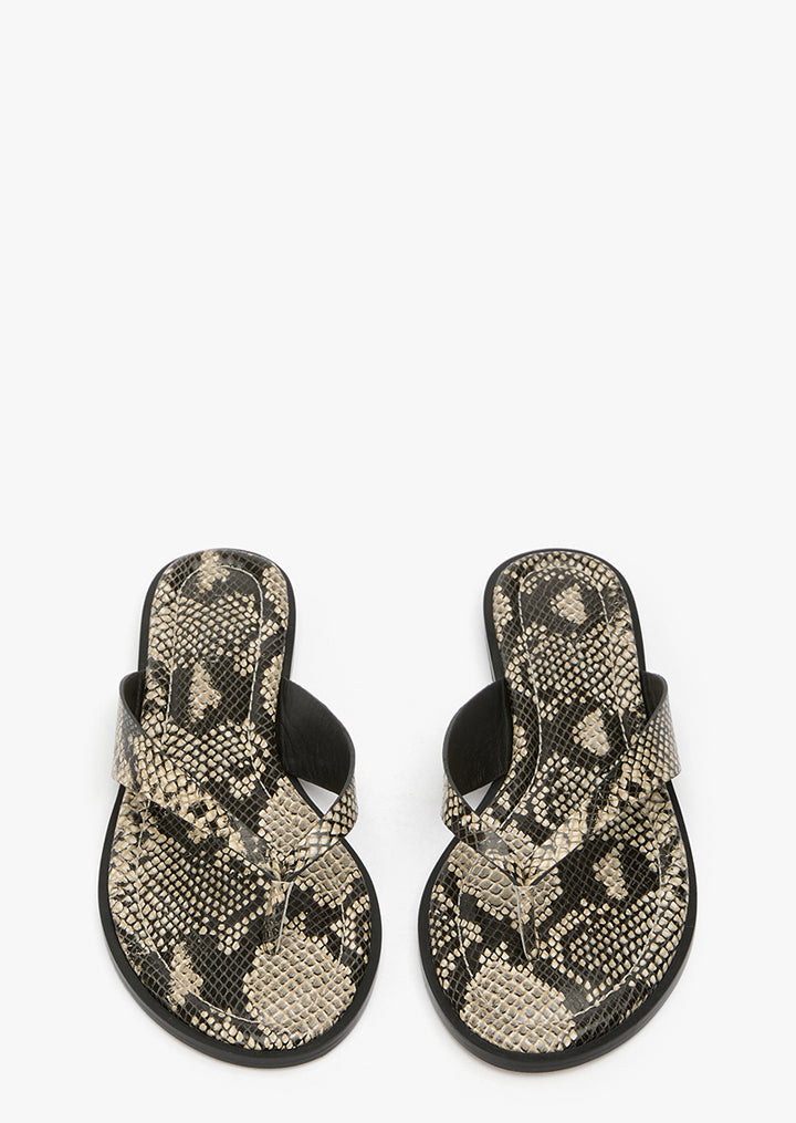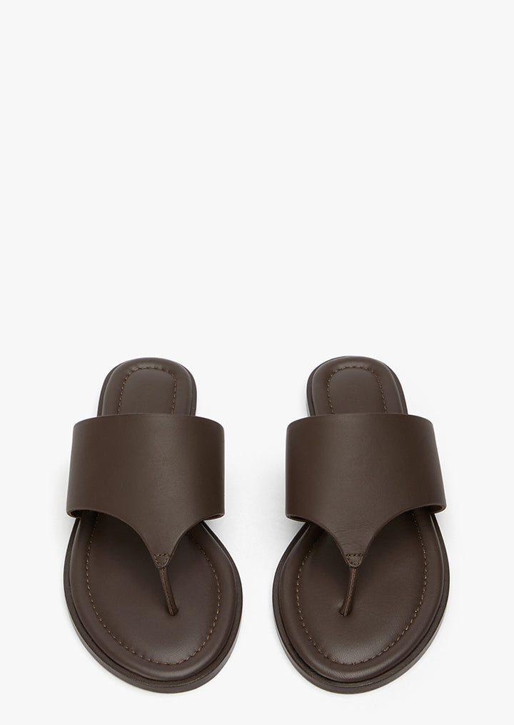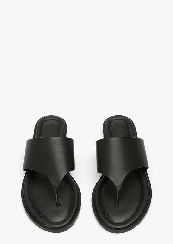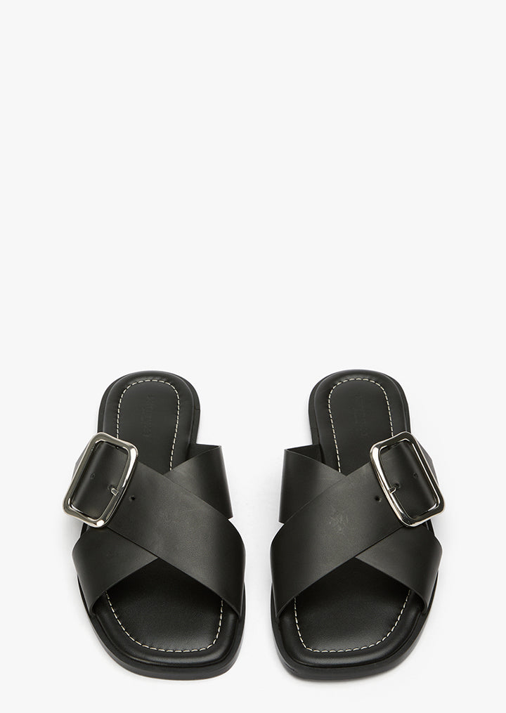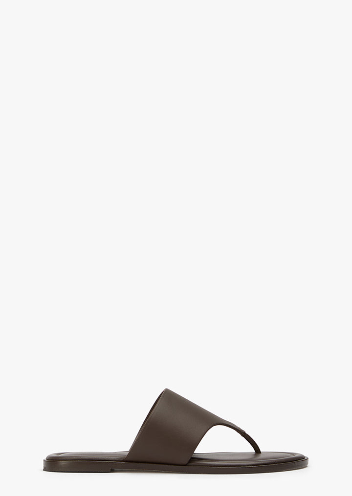 Practical, versatile and trendy, our flat sandals are an essential in any woman’s wardrobe. Choose from our wide range of minimalistic leather slides and strappy sandals or opt for a contemporary design with a metallic finish.