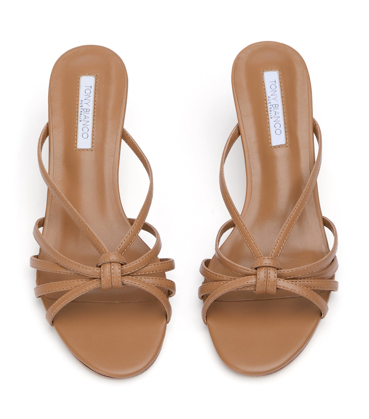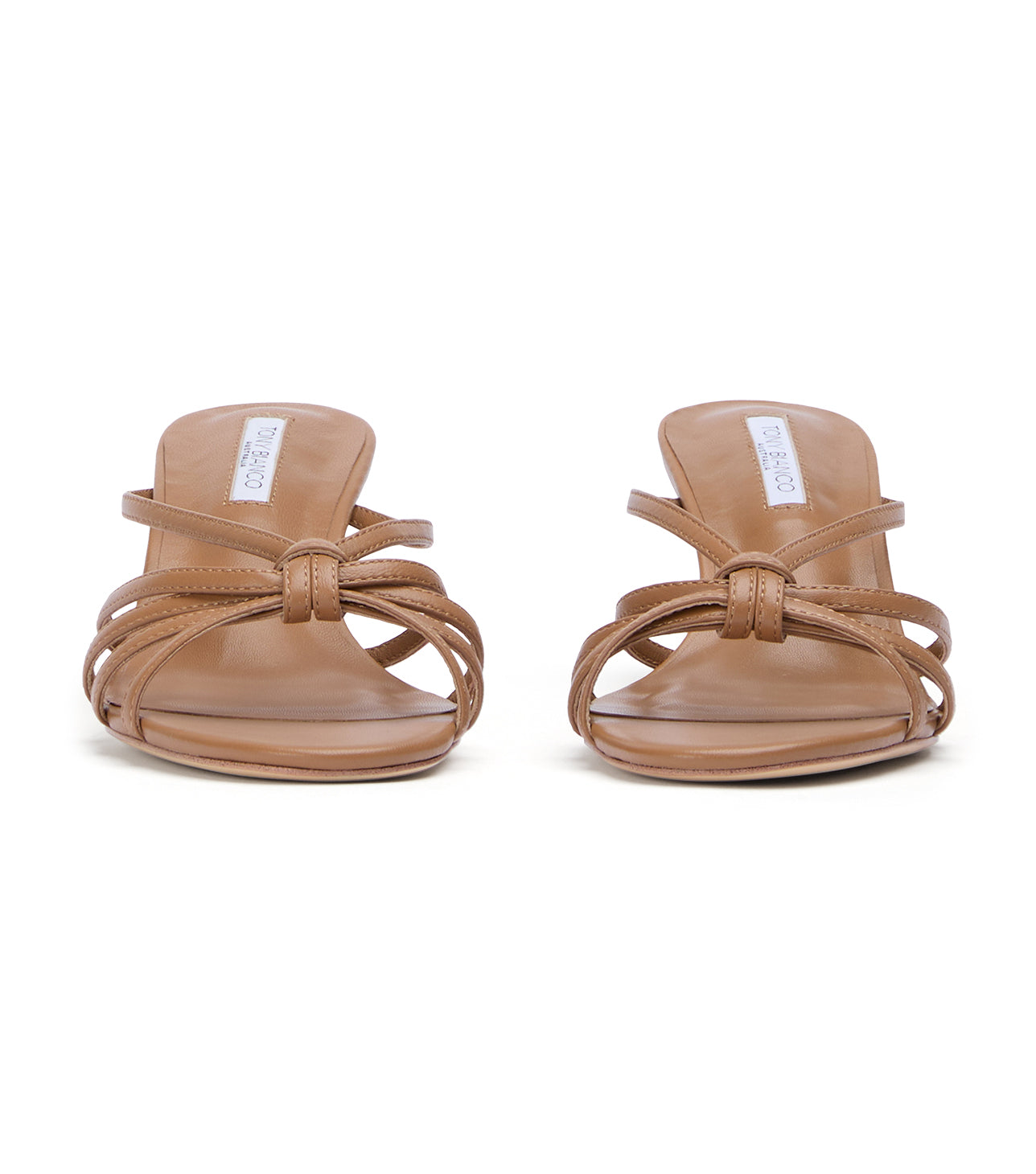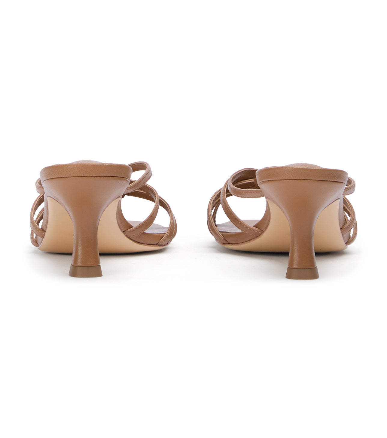 Sleek and minimal, Rosa is a strappy low-heel mule crafted from smooth leather. A refined silhouette with a rounded open toe, clean lines, and effortless appeal.